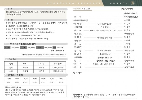 2025년 10월 12일 주일예배